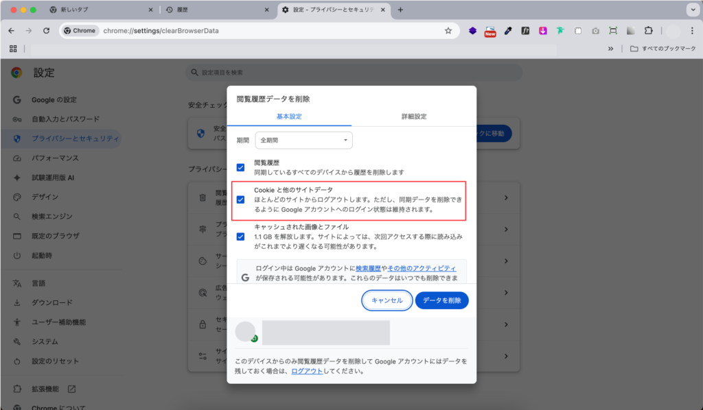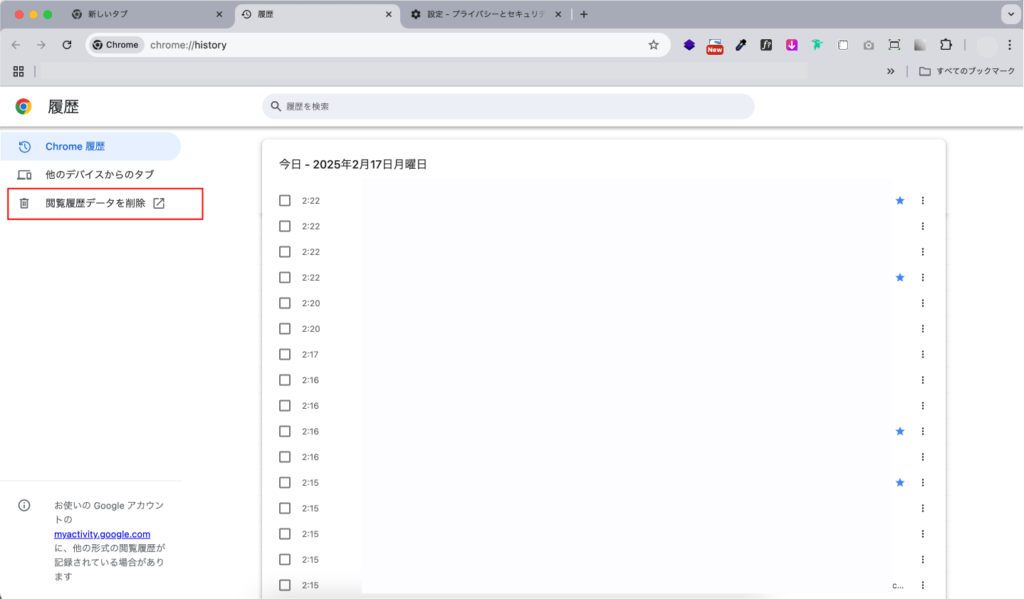 チェックしたのち、「データを削除」をクリックし削除してください。
